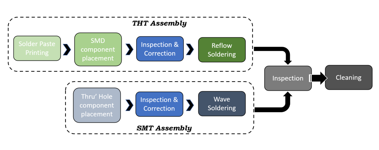 Surface mount technology is used for small & miniature components/ICs with small footprints which allow for a larger density of components on the PCB. In this method the components are mounted directly onto the surface of the PCBs. Sensitive components, some very small, such as resistors or diodes are placed manually or by automated pick & place equipment onto the surface of board.